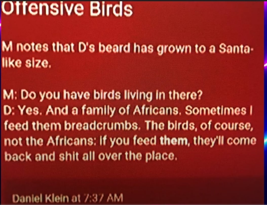 “notice my black profile pic I definitely didn’t steal from Facebook” sounds fishy. Anyway, I’m black, and that was some offensive shit. Do I think he should be fired over it 14 years later? Nah. But everything else you said sounds like Russian Bot™.