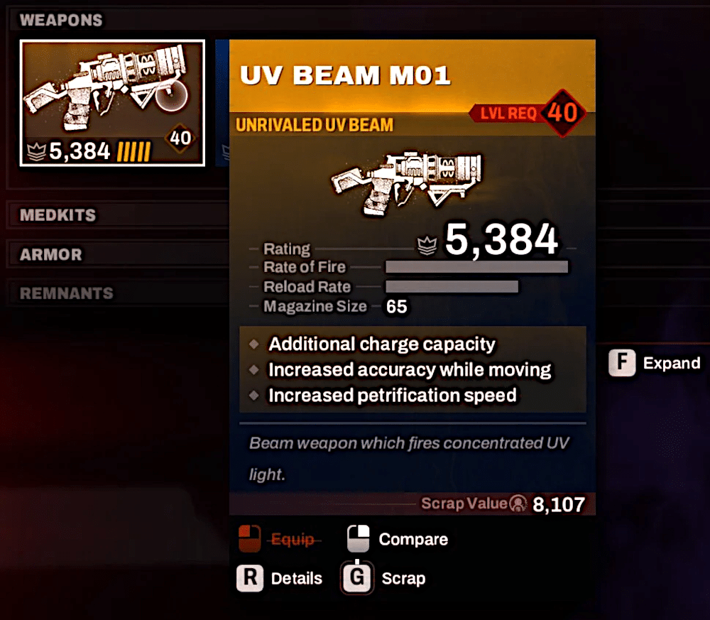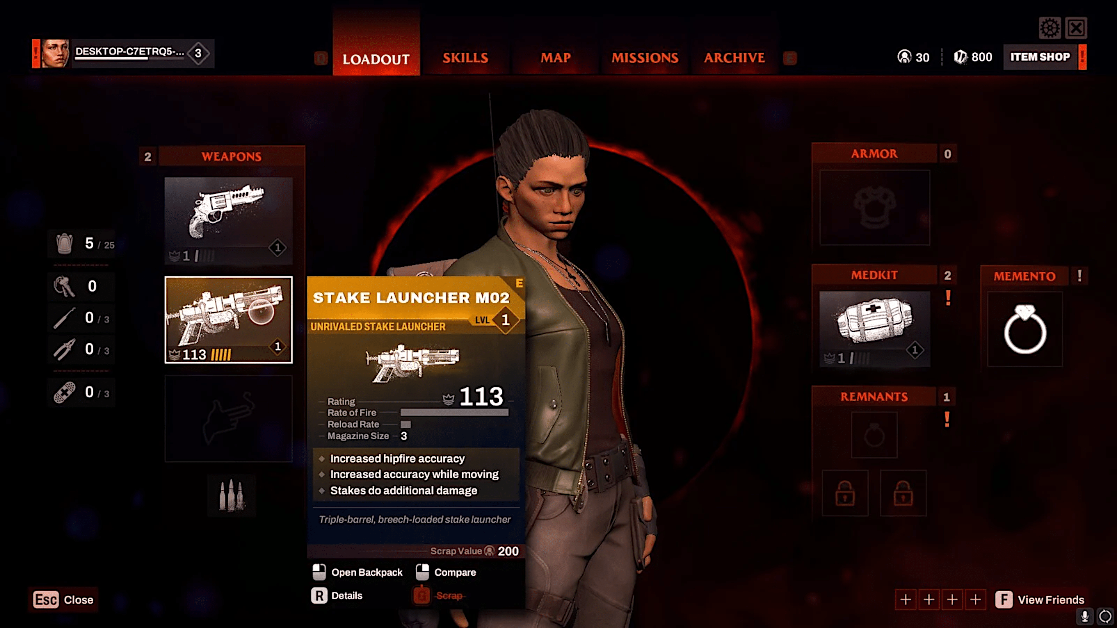 - -Mix of traditional weapons like rifles and handguns, and also more unique stuff like a Stake Launcher.