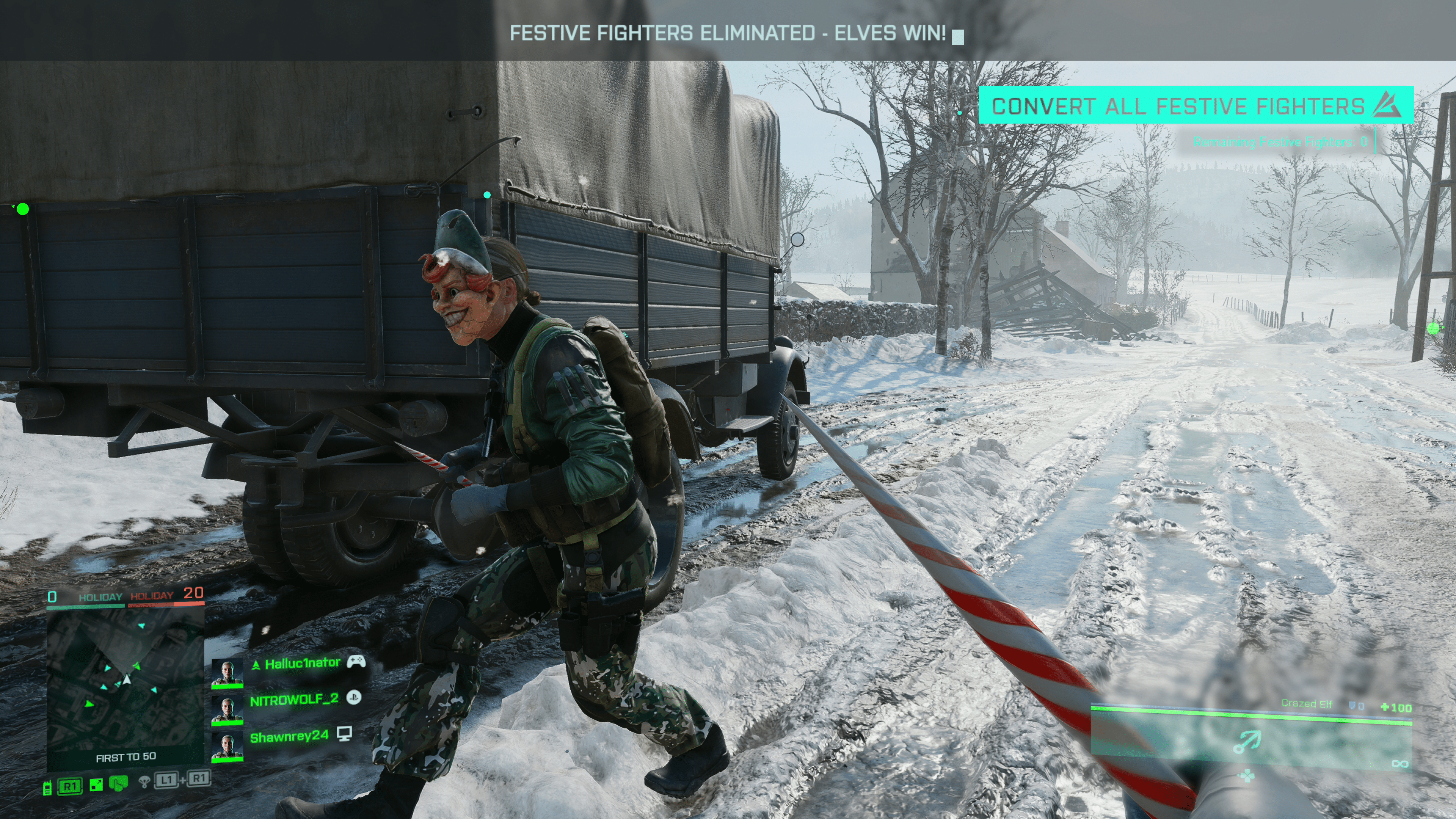 DICE has sprung the Battlefield 2042 Christmas event today called “Attack of the Elves.” Starting today, December 16, and running until January 6, 2022, players can join Team Santa to battle with Team Elves in 32-player combat!