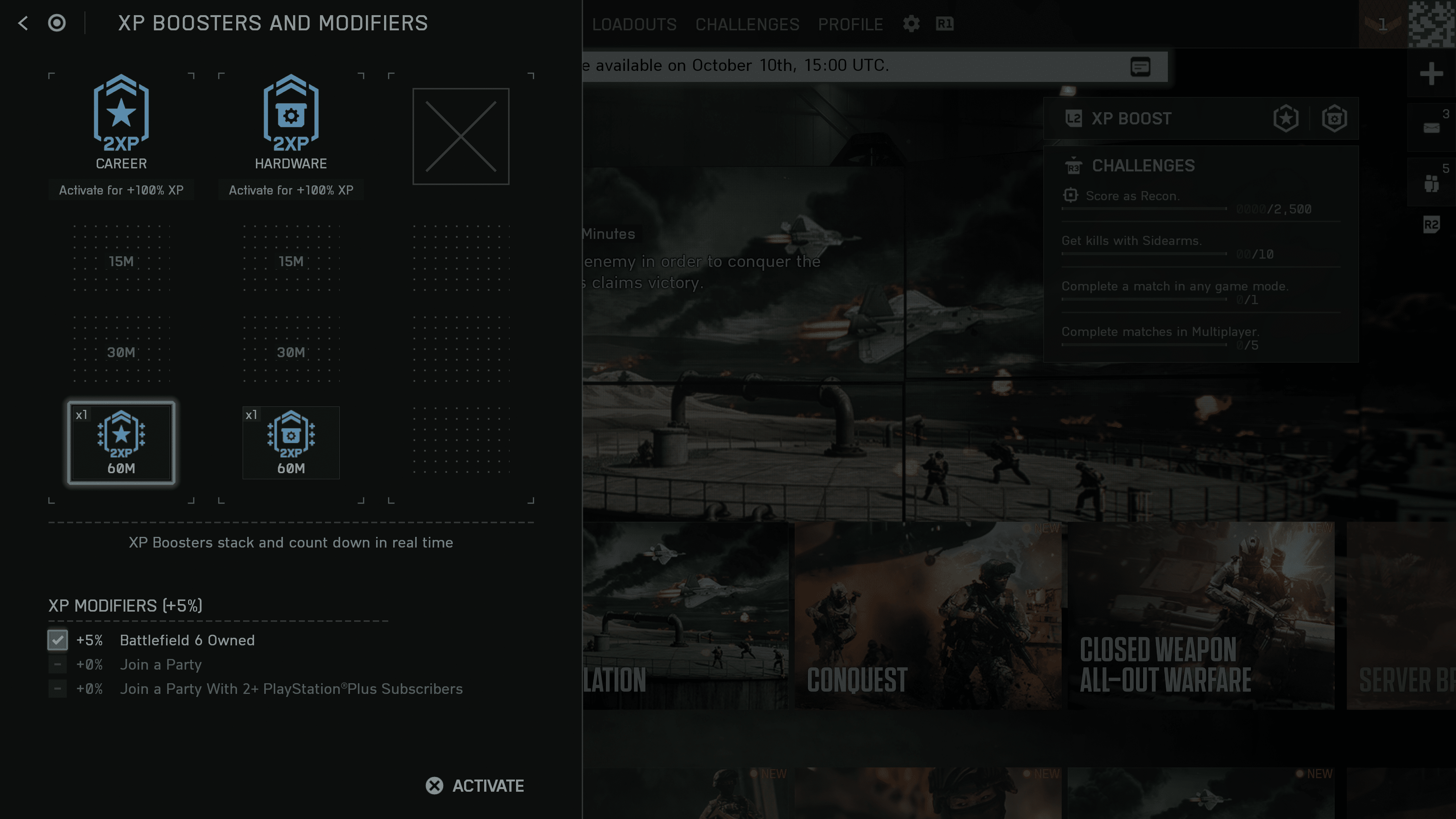 Loading the game now (via our review key), you can see in the XP boosters section that those on PS5 who party up with other PlayStation gamers with active PlayStation Plus subscriptions will net a 15% XP bonus per match.