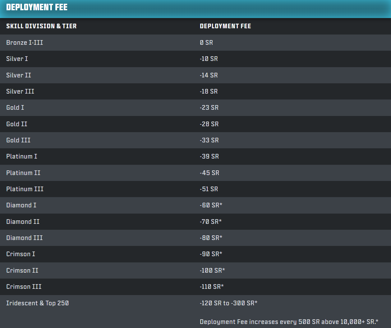 - SR Forgiveness: If a matchmade teammate disconnects during a game and does not rejoin, you won’t lose any SR for the match. You’ll still be able to gain SR if you manage to gain more than your Deployment Fee. However, SR Forgiveness does not apply if a party member leaves the match early.