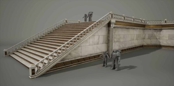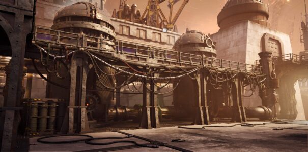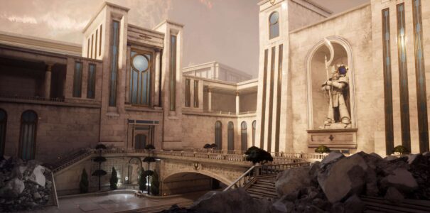 The images shown here are from a former Jackalyptic Games artist’s portfolio and seem to have been created between 2024 and 2025. They provide a good look at the project’s art direction, showcasing a wide variety of environments and assets. Among them, we can see statues of the iconic Space Marines, alongside chaotic, war-torn zones filled with heavy machinery.