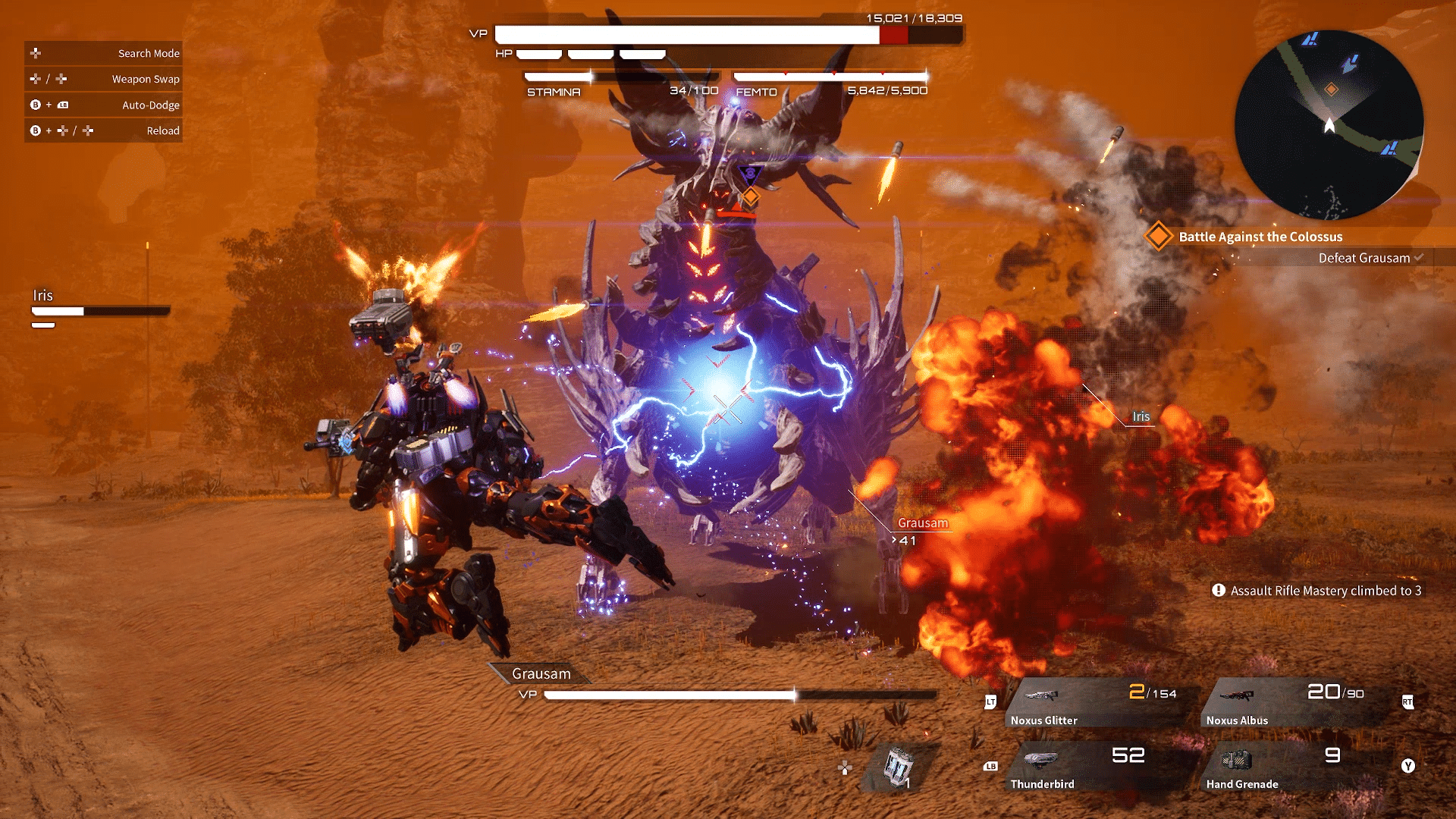 That, in a lot of ways, is thanks to the new and improved targeting system, which still features manual locking but also adds orbit lock-on during combat now. This greatly enhances mobility, making the experience feel closer to an action game, similar to Armored Core, over its predecessor. It’s more refined in many areas, which makes it feel incredibly satisfying to control. The big boss battles are still a bit of a cluster to deal with when it comes to the camera, but fighting other Arsenal-based enemies, and it being this high-speed chase with particles and explosions flying everywhere, it’s precisely the kind of game mech fans want.