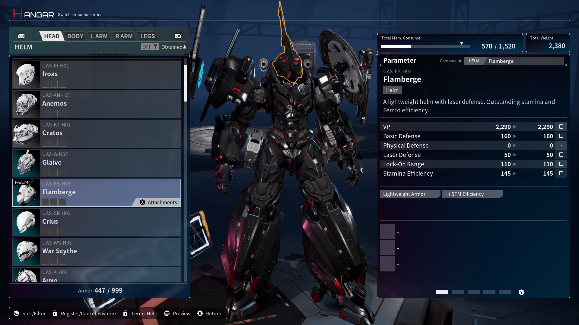 As I mentioned, there are a ton of customization options for you to play around with, with Arsenals coming in with three different build types, those being light, medium, and heavy. There’s a memory limit, as well as weight and other stats affecting things for you to take into consideration, but the builds that players can make are pretty limitless. With the glamour system, you can look however you want without being forced to look from your armor. Weapons and armors have skills that can be unlocked for added stat bonuses, too.
