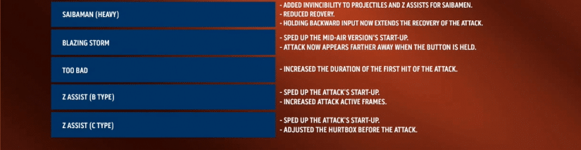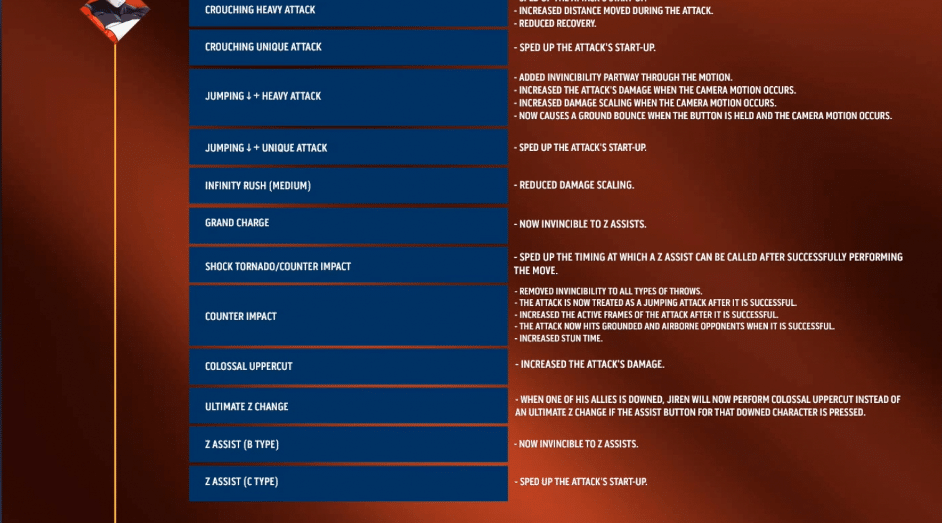 While the general changes are listed below which we’ve written by hand, the fighter balance changes are in the gallery. You’l have to cycle through the entire thing to see the specific change to that particular fighter.