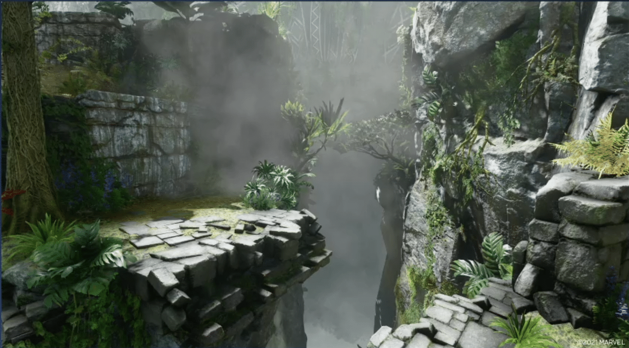 And finally, the team also showcased a new screenshot during the stream. In the screen below, you see a location just hidden outside of one of the many explorable caves that War for Wakanda will have. There isn’t a whole lot here, but the team did discuss that their approach with level designing differs here as there will be a lot more verticality. They describe the process of rather than building from down up, they started up and worked their way down