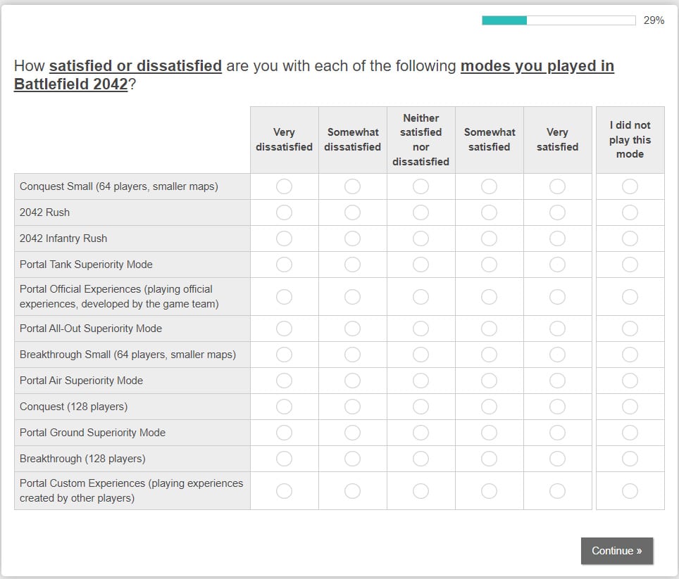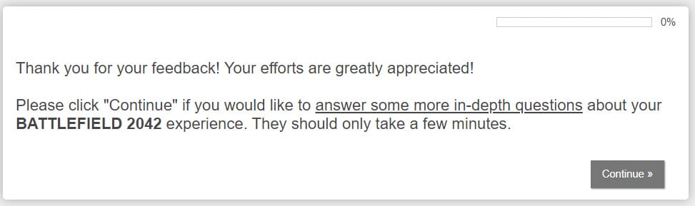 Hopefully, the survey gets in the hands of players who actually care about making the game better. While we might not see a drastic overhaul in BF2042 regardless of the survey results, this survey could help shape future Battlefield titles.