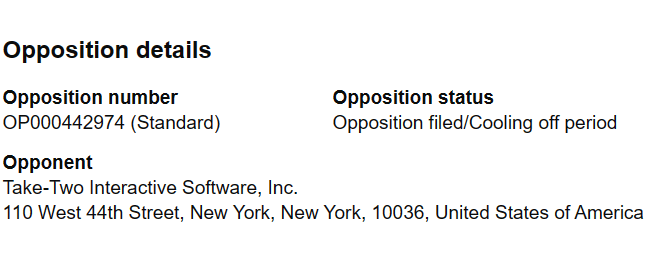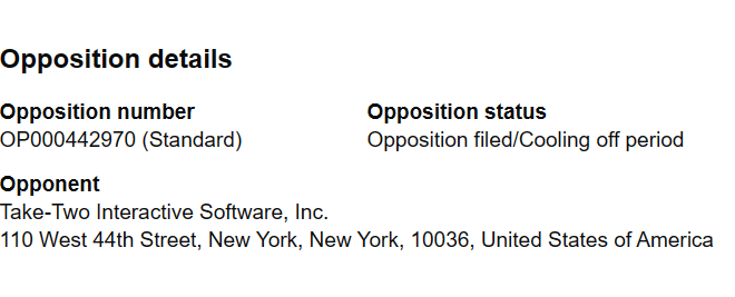 According to the trademark’s historic details, both Remedy logos were filed in May of 2023. Since then, they went through an examination and publication process before ultimately being opposed on September 12 of last year. Looking at the oppositions information, it’s clear to see that Take-Two Interactive is the company behind the dispute.