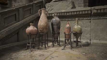 The first noticeable detail that we can get by looking at the gallery is that the game was clearly planned to return to a Greek setting. This is evidenced by the presence of Greek temples, classic artifacts such as pottery, and other details we will discuss later.