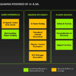 The really intriguing part of this particular leak is Microsoft’s plans for AI. We can see in the images that Microsoft is hoping to fully implement AI and machine learning into the next generation of gaming. Listed amongst their next-gen features are neural network super resolutions, AI game testing, and even NLP dialogue generation, which could mean entire game dialogues that respond reactively to anything the player might say via a learned language AI like ChatGPT.