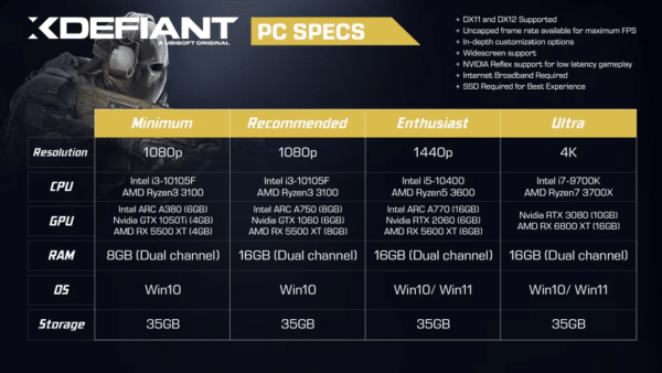 XDEFIANT PC REQUIREMENTS AND FEATURES: