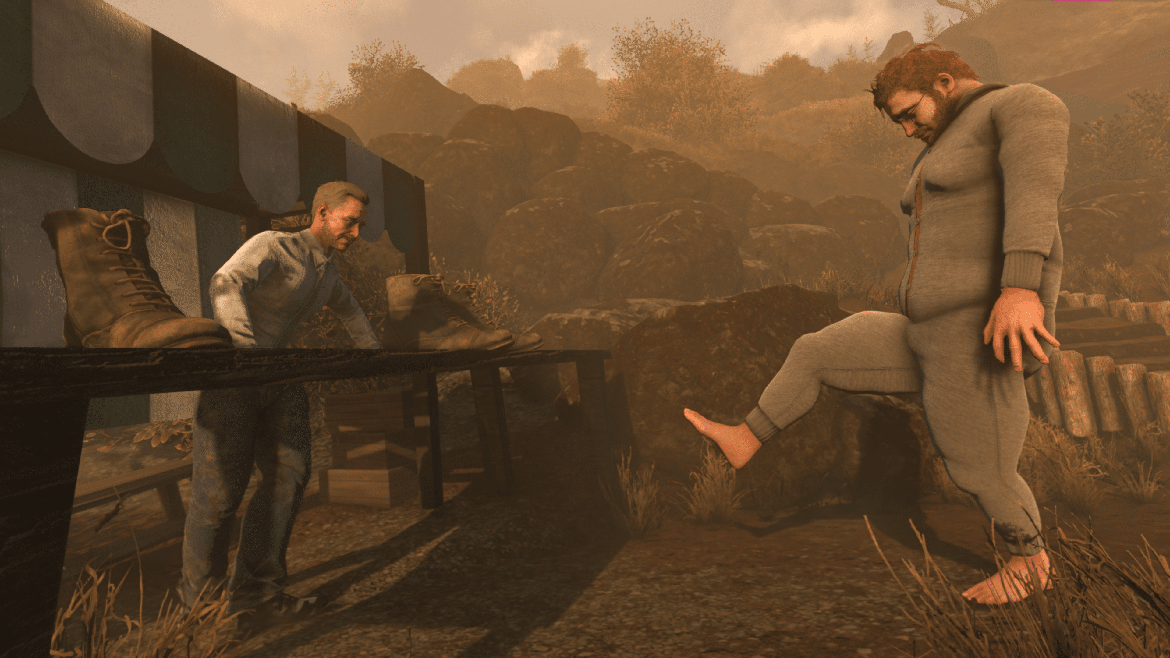 Now, some of that was exaggerated, because truth be told, it’s not entirely as punishing as, say, Getting Over It. That game can be beaten in less than an hour, yet it took me over 20 hours because I kept falling off the level. Baby Steps seems much more approachable, given its open-world-like design that allows players to approach things however they want. It’s still pretty hard when it wants to be, but players now have a ton of different avenues they can take to get to whatever destination they’re trying to reach. One such example was I wanted to avoid a pile of rocks going up a hill, because I knew I was going to fall from it and have to rewalk up everything again. So I decided to take another path that was on the other side of it. Still just as dangerous as it was, bringing me through a higher inclined slope, but it did give me that option to do that, and try to find easier ways to go about things.