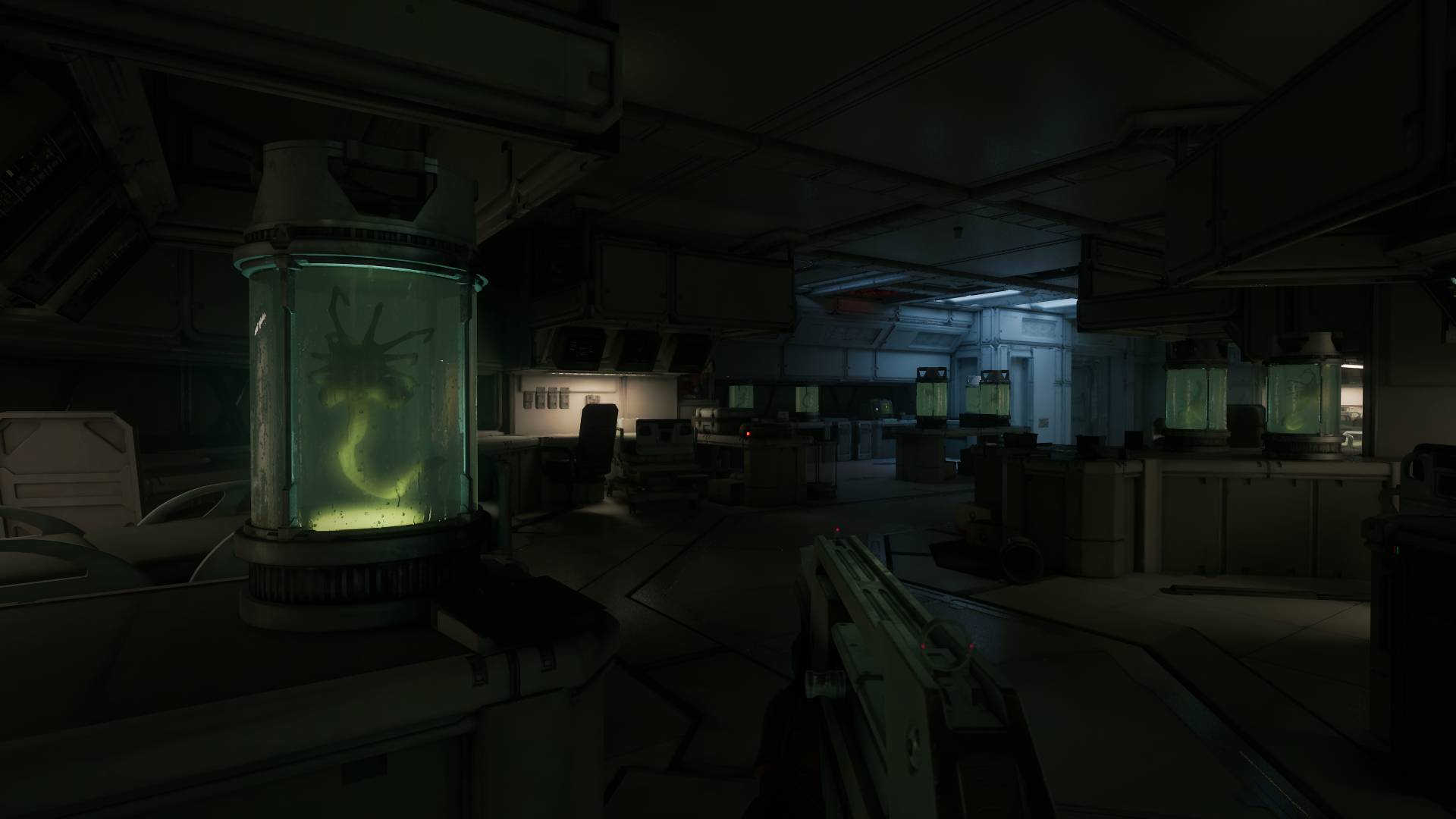 Motion actions that previously required you to reach around your body for a certain utility have now been replaced with a single button press. That does, in many ways, lose a lot of the “horror” the VR version had, where you would be fumbling around, trying to reload or swap weapons as something was trying to eat your face. The Facehugger scene certainly doesn’t evoke the same bone-chilling feeling as it does in the VR version, but it’s still a great scene.