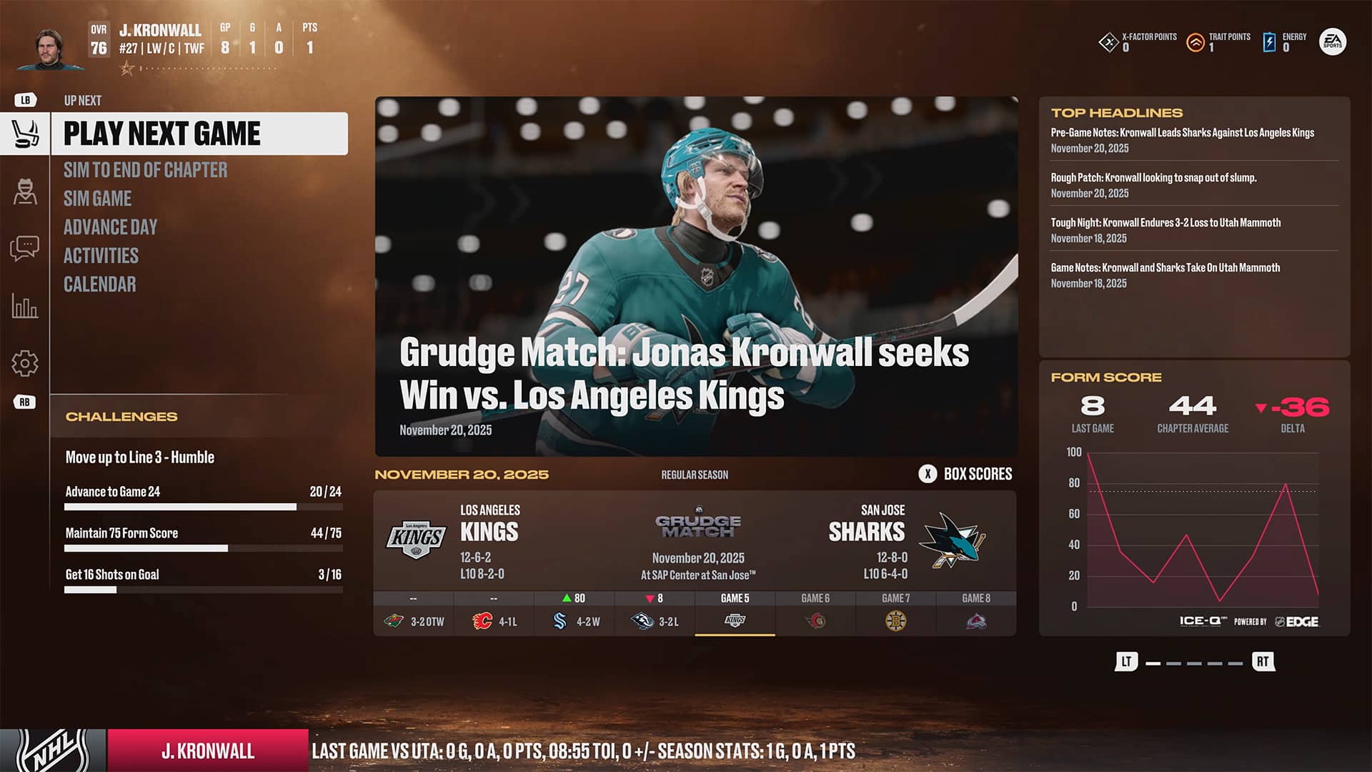 Similar to Madden 26’s Franchise mode upgrades, NHL 26’s Be A Pro also adopts a chapter setup that helps you to better know where you are in your career and what goals you are currently working towards at any given time. These chapters include situations such as the NHL Draft, roster battles, and playoff pushes, as well as attempts to win the Stanley Cup. I think this works perfectly here and takes away any concerns about the mode being aimless with you just playing game after game.