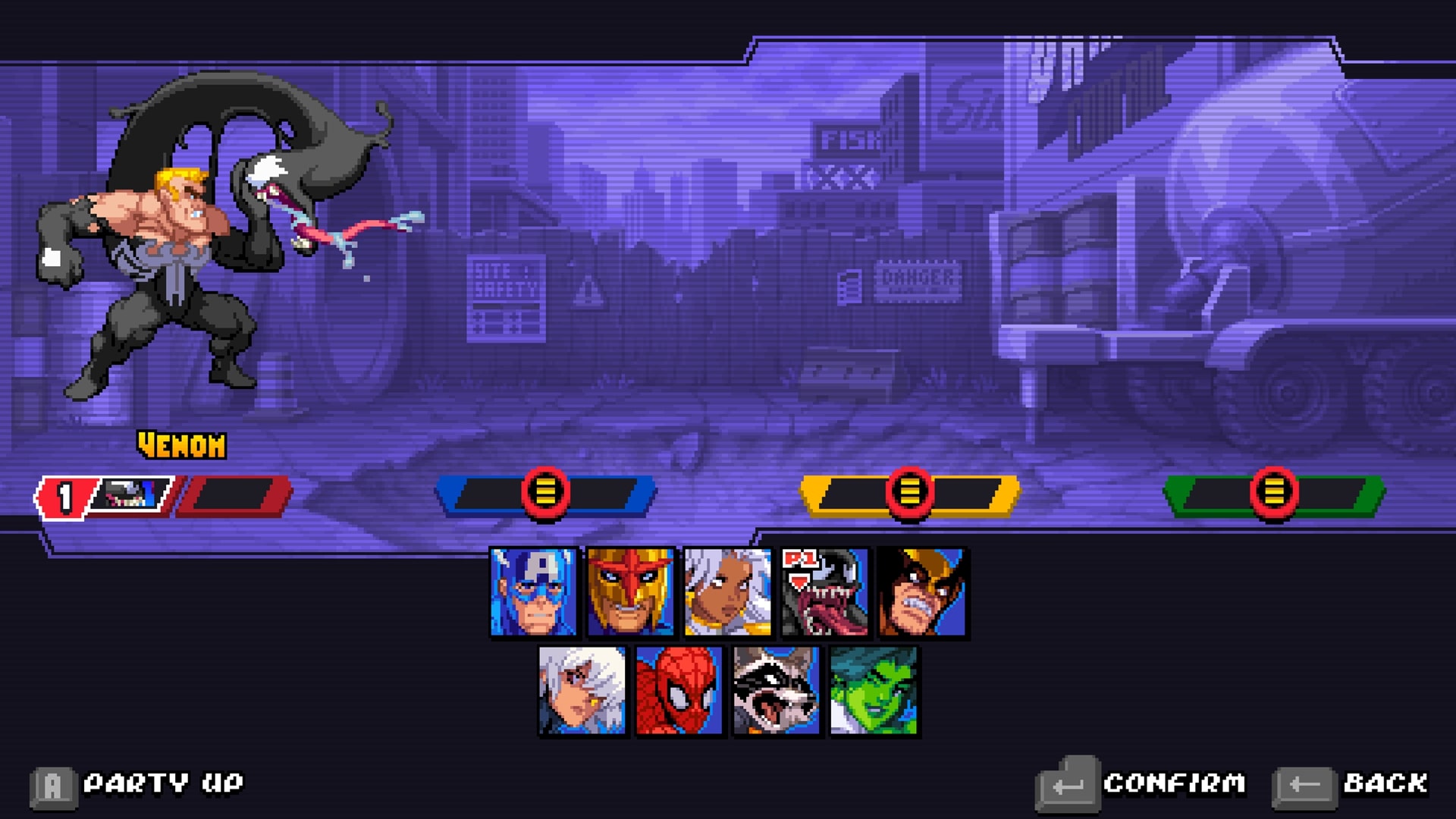 The roster is already stacked: Spider-Man, Wolverine, Captain America, Storm, Nova, Rocket, Phyla-Vell, She-Hulk and my favorite character Venom, with more teased in the full game (15 total from what I read). Each character animated with gorgeous pixel art that looks like a Saturday morning cartoon hopped into an arcade cabinet. It’s impossible not to appreciate how much care went into making every punch, swing, slash, and a bit of comedic relief that feel like it belongs to the Marvel universe.