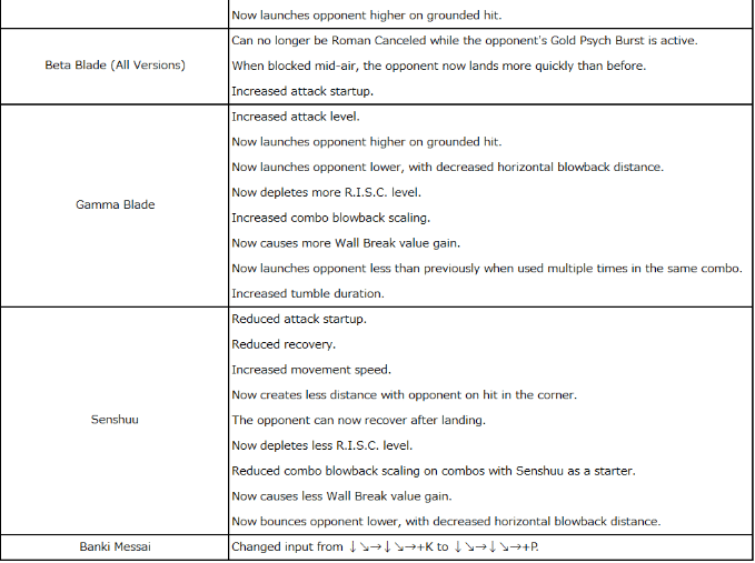 • Roman Cancel Canceling into normal or special moves from a Roman Cancel now triggers a slow-down effect, and limits the Tension gauge cost.
