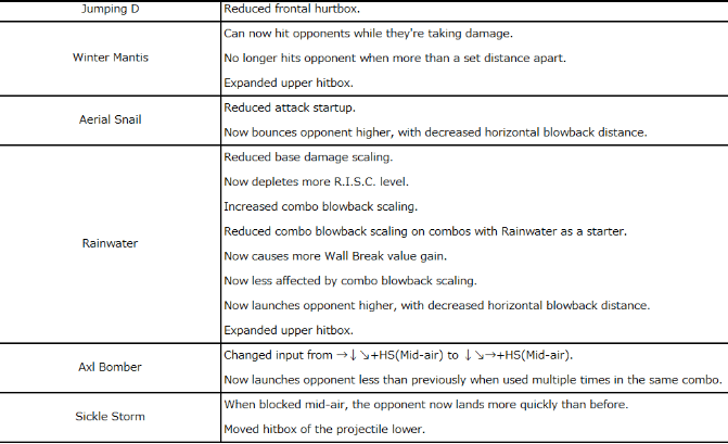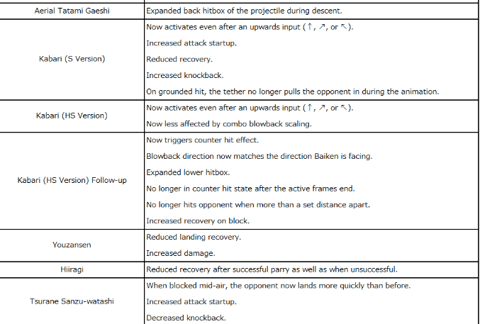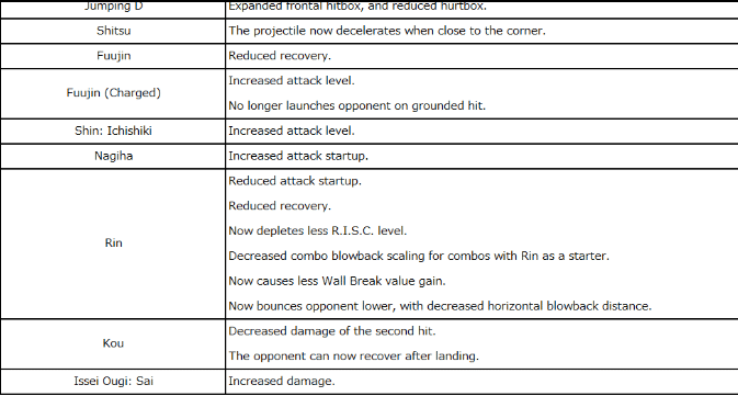 Overdrives that work well as counterattacks have had their attack startup, recovery, etc. revised with their damage remaining unchanged, to make it easier to punish them when blocked.