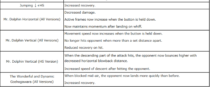 As many characters had less utility for their Jumping P compared to their other aerial attacks, we’ve adjusted the blowback effect on hit, making it easier to convert into a combo.