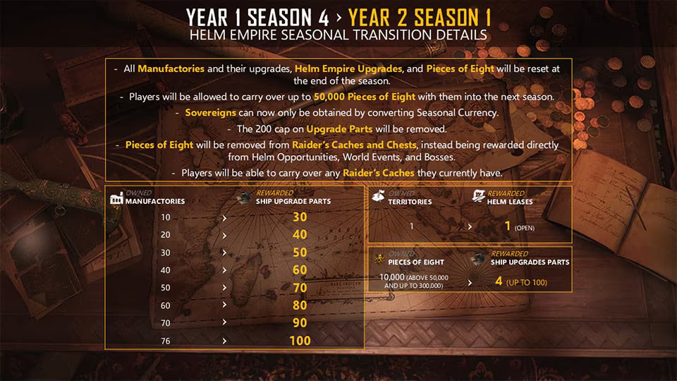 - Note – Pieces of Eight will be removed from chests/caches that have been obtained prior to Y2S1 in all players’ inventory.