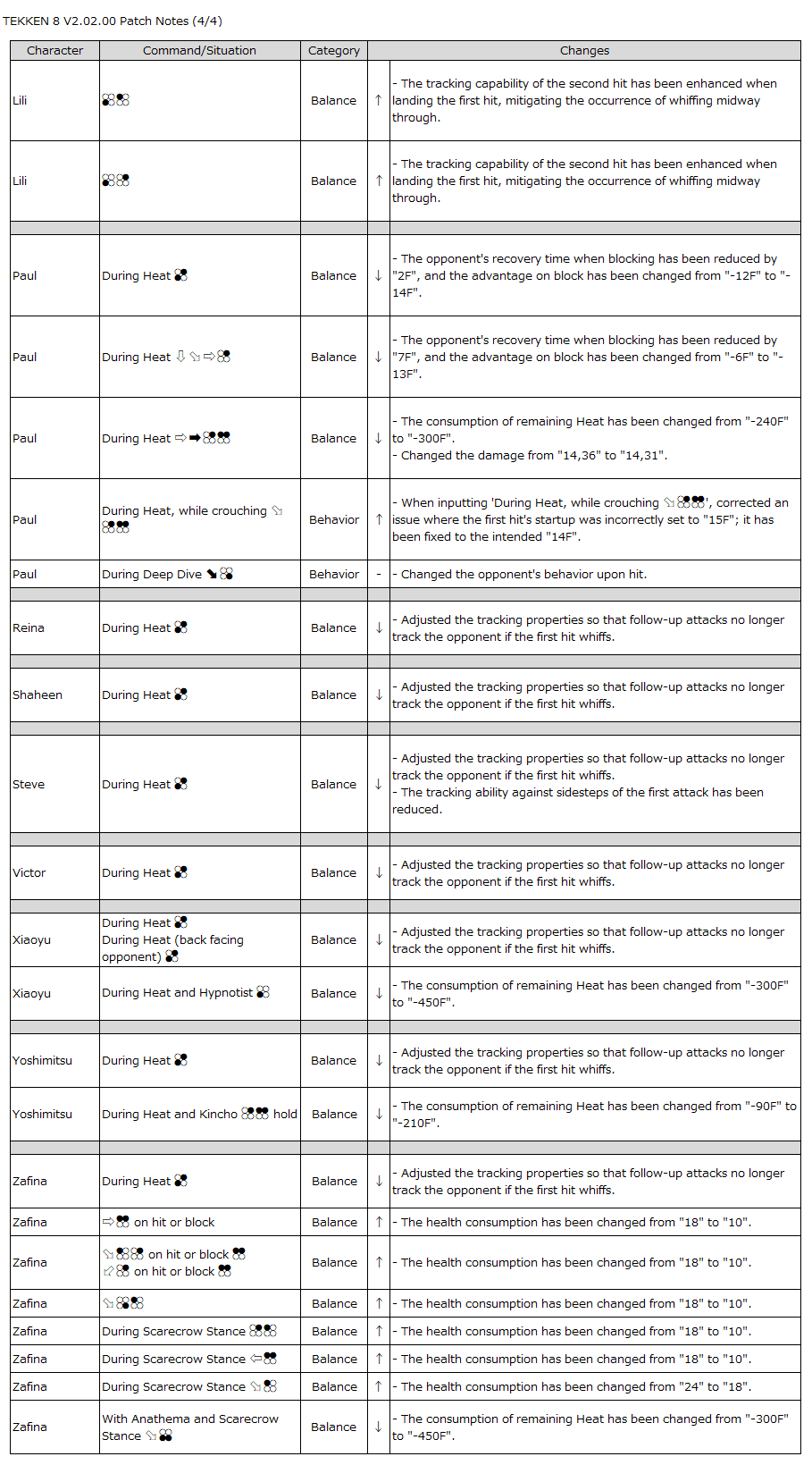 This aims to prevent situations where the defending player is unfairly hit despite a successful evasion and to improve counterplay opportunities against Heat Smash.